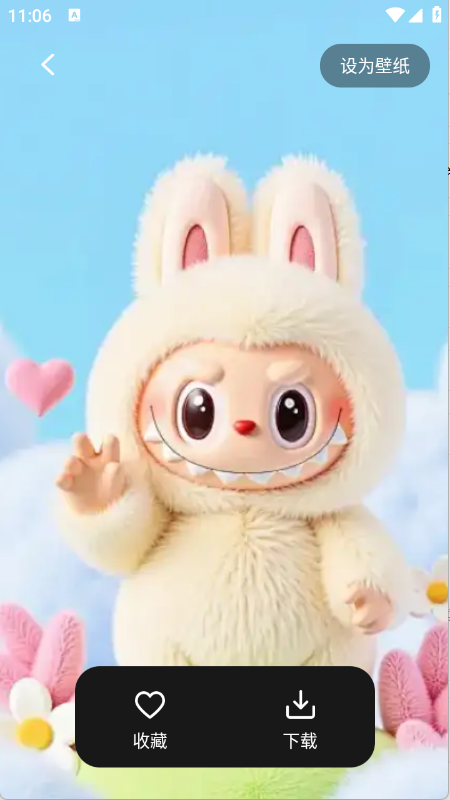 最美啦布壁纸是一个资源丰富的壁纸应用,软件以可爱萌趣风格为核心,提供大量卡通、动物、清新等主题的高清壁纸,界面设计简洁直观,每张壁纸配有清晰的设为壁纸、收藏和下载按钮,操作便捷,内容分类明确,便于快速浏览和筛选,壁纸画质清晰,色彩柔和。