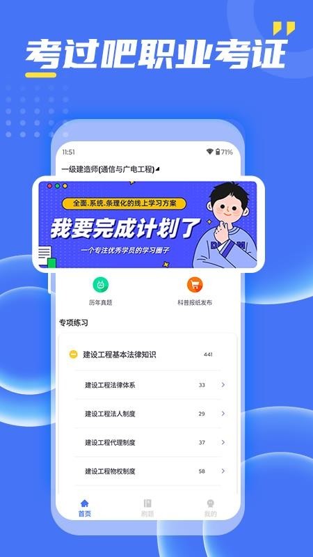 考过吧职业考证是一款不同职业考证复习练习的软件,主要覆盖了医药类、建工类、财经类、职称类等考试的备考资源,用户可以根据自己的知识掌握水平以及需求选择合适的题目课程练习,错题收集反复练习还可以搜索解析,理顺思路形成自己的解题方案。软件还可以再社交圈里面互动交流学习心得,自动更新学习资源,推荐一些考试相关政策公告,让你第一时间了解,清晰规划。