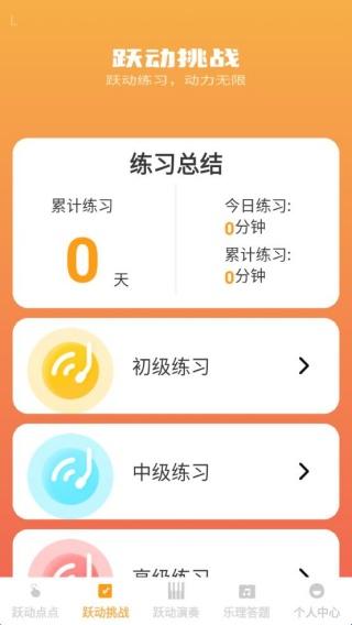 4、互动练习:支持用户互动练习相关的音乐,有效实现不同难度的练习,更好的进行跃动挑战。