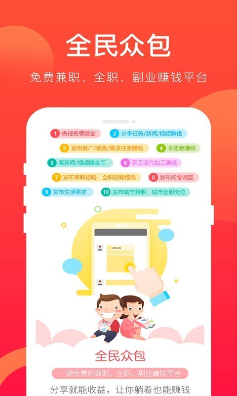 1、全民视频:自媒体创作者、商家、个人创作者等都可以将原创视频、营销推广视频、短剧、段子等发布到全民众包平台上来,用户可以看视频/直播赚钱。