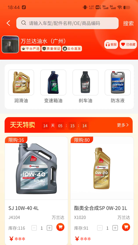4、筛选产品:切换产品分类、价格、车型等条件筛选汽车配件资源。