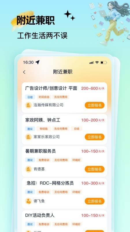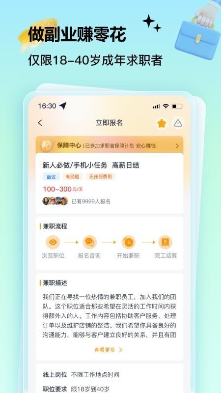 4、立即报名:在找到合适的兼职岗位时就能够立即通过平台报名,及时掌握更多机会。