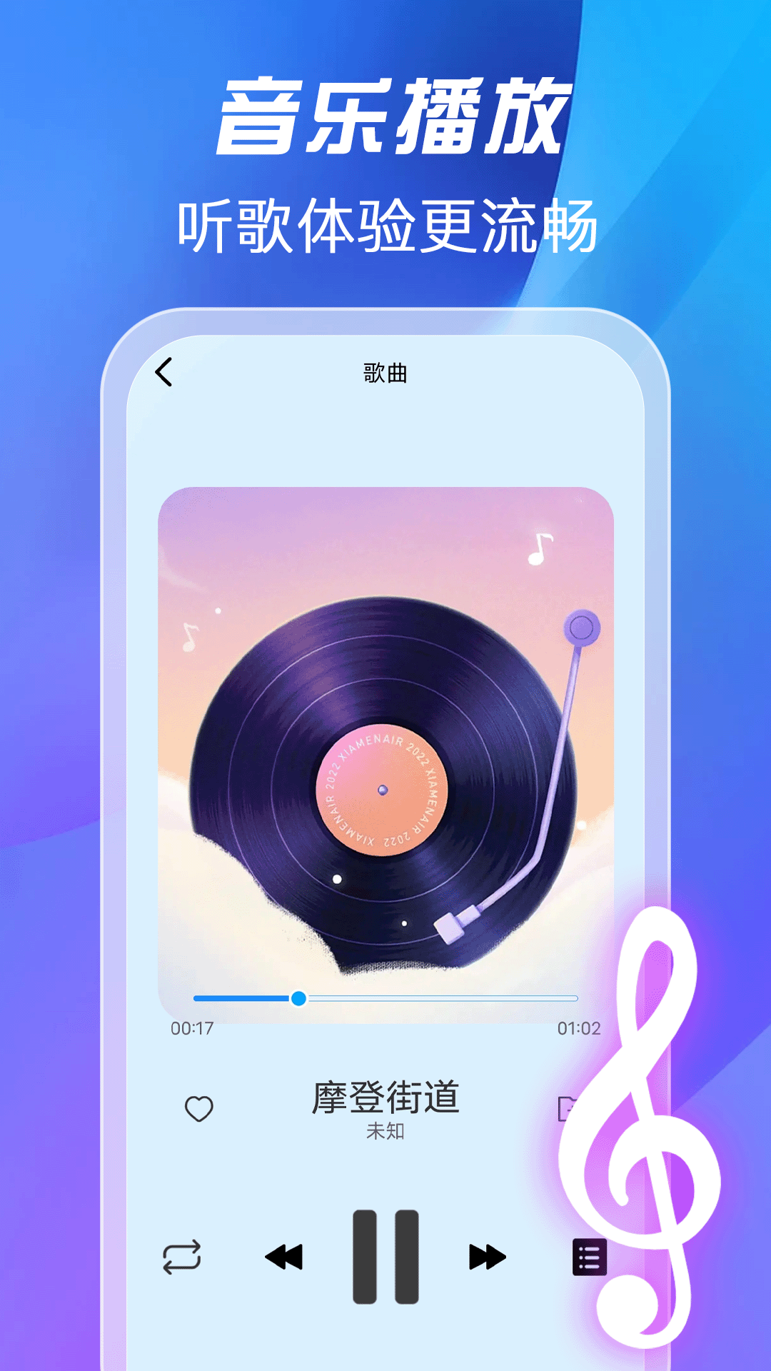 全免歌曲播放器是一款非常优质的听歌软件,创建属于自己的个性歌单,自由听歌想听那首歌就听那首歌。随心切换播放音乐的模式,优美的音质让人听得舒心。海量的歌曲资源,每天还会更新其他的歌曲,用户喜欢的话可以收藏起来,免费收听,软件推出的智能扫描本地的音乐,用户可以快速找到属于之前回忆怀念经典歌曲。