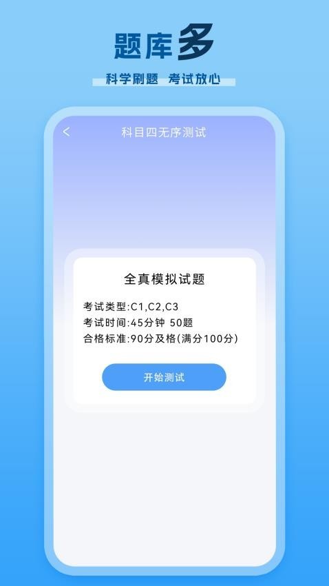 2、仿真模拟考试:仿真考试环境,支持全车型科目一四模拟考试