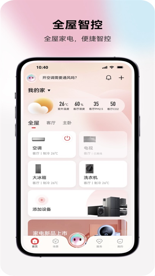 2、用户可远程控制家电设备、创建智能场景、获取家电运行状态等。
