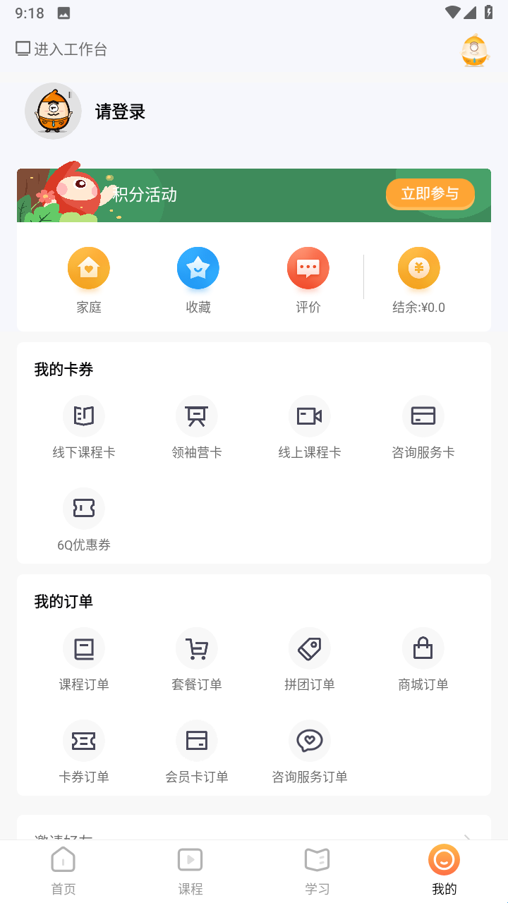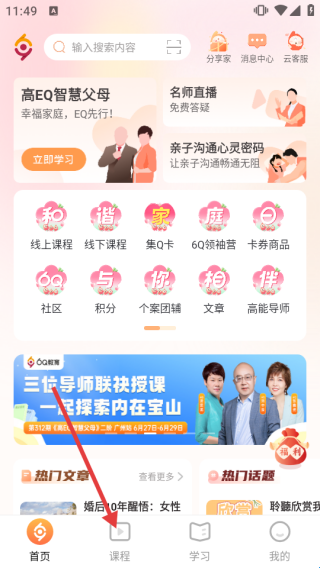 1、打开APP首页,点击底部【课程】进入课程浏览页面。
