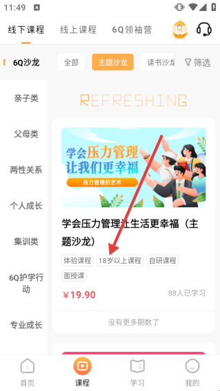 2、在【课程】页,选择感兴趣的课程,点击进入下一界面。