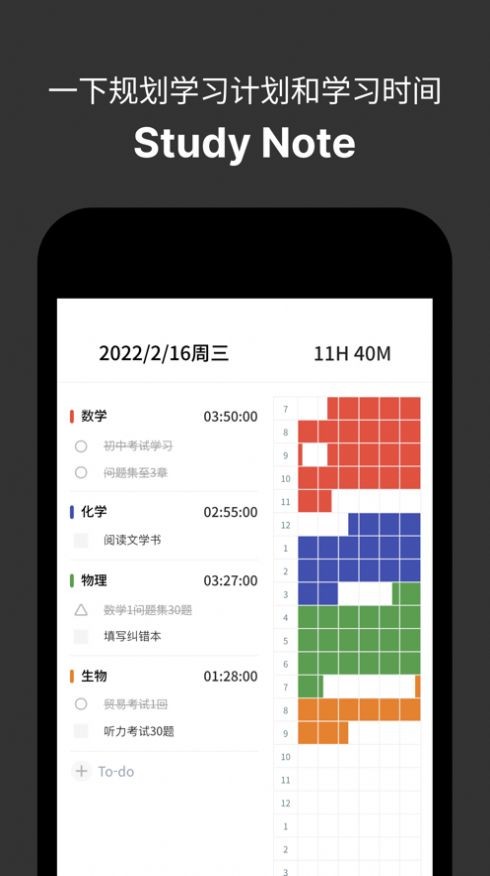 规划各科目的学习计划,一块确认当天的学习记录。
