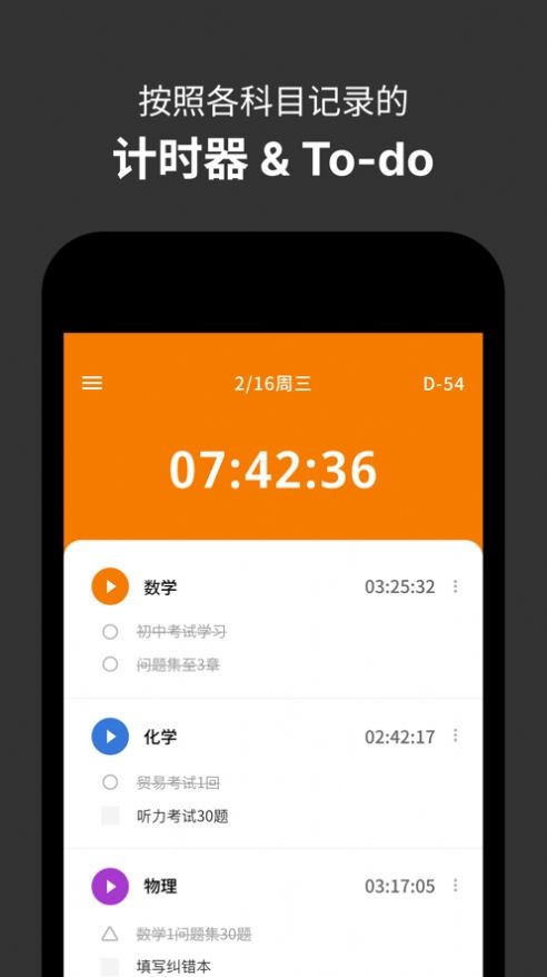1、每个科目的秒表是最基本的,所以根据科目来管理你的学习时间。