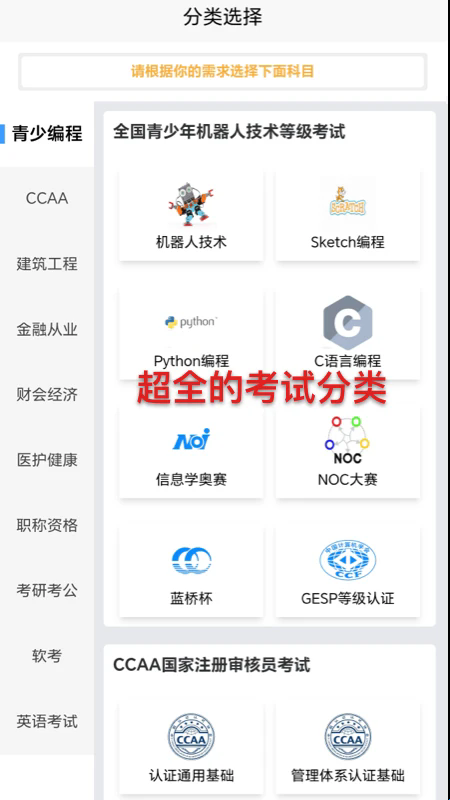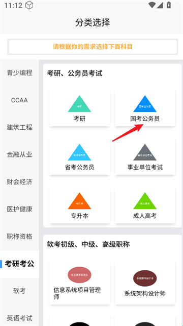 2、分类中选择需要的科目进入。