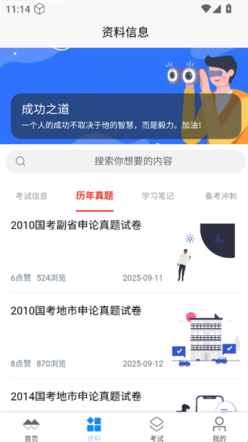 4、资料页可查看历年真题等材料。