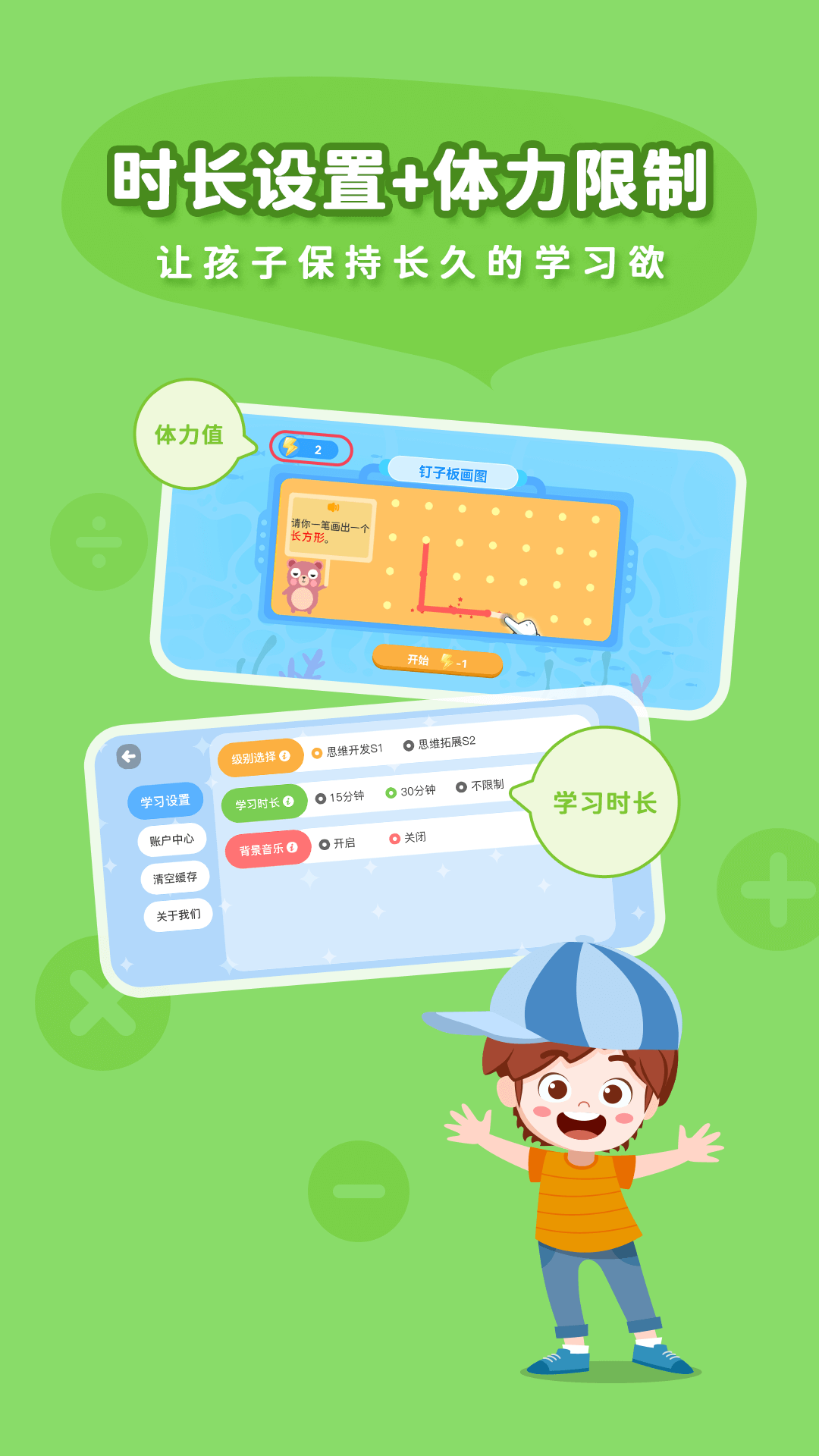 内容涵盖图形几何、数算、逻辑推理、生活应用四大类。它将数学知识与互动体验相结合,寓教于乐,正确错误信息即时反馈,让孩子快乐学习。
