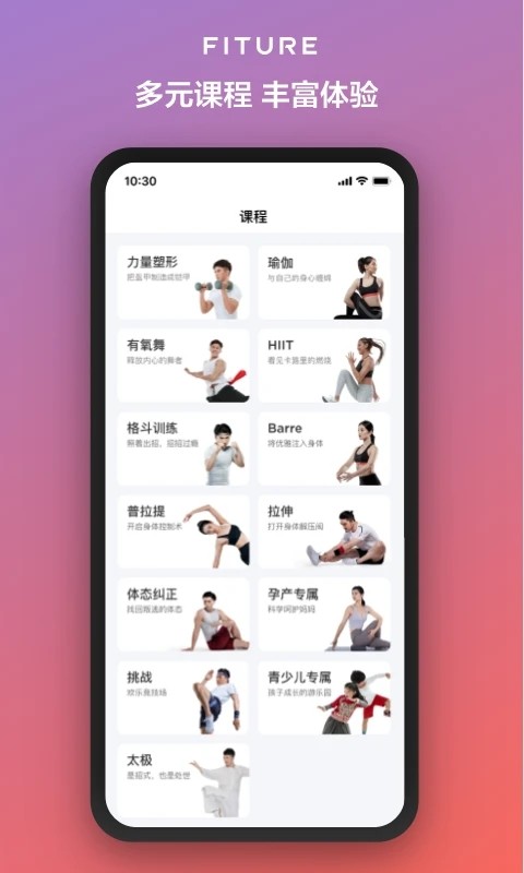 1、明星教练陪伴,在家即享精品健身课程体验。FITURE内容团队与专业明星教练精心打磨,涵盖近千余节课程,同时适宜儿童、成人、年长者等各个年龄段。