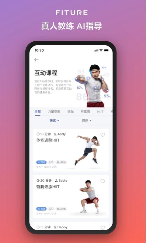 FITURE致力于通过科技帮助大众建立健康的生活方式.提供了集智能科技健身硬件、丰富专门健身课程、AI教练专业指导、专属定制训练计划、高级垂直健身社区、一对一针对性服务在内的科技健身方式产品和服务。快来下载试试吧。