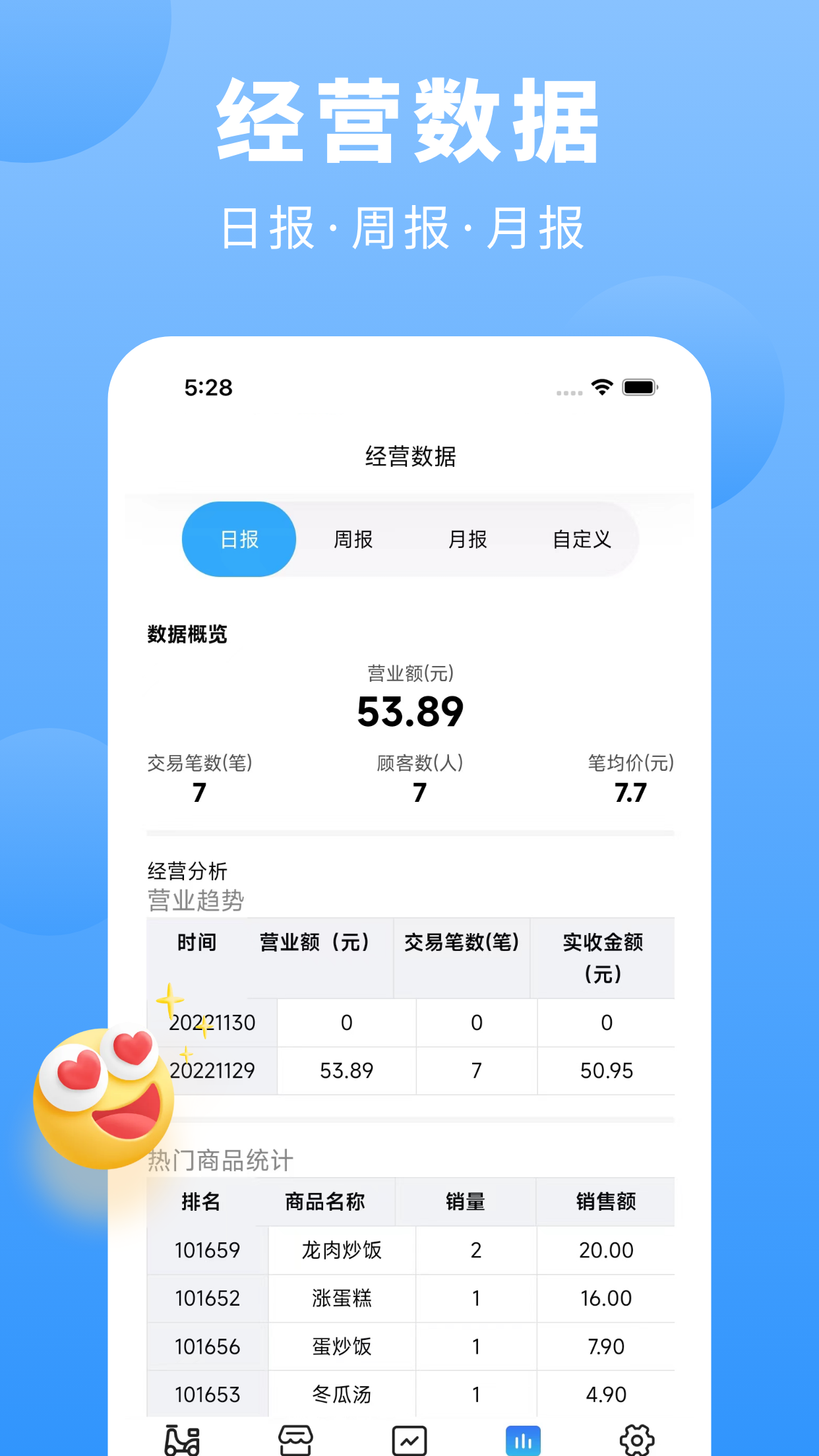 3、数据分析:生成多维度经营报表,辅助科学决策。