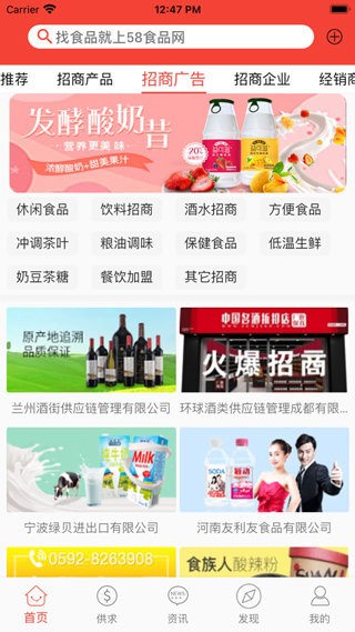 58食品批发网是一款相当不错的食谱批发app,正规合法,为我们甄选最特色的产品,满足经销商的需求,为中国食品生意提供动,确确实实是非常好用的食品批发平台,值得期待。有需要的小伙伴们快来下载试试吧!