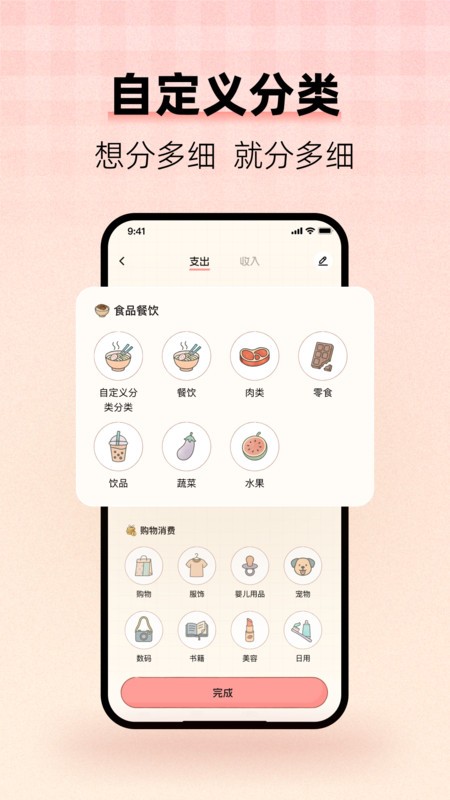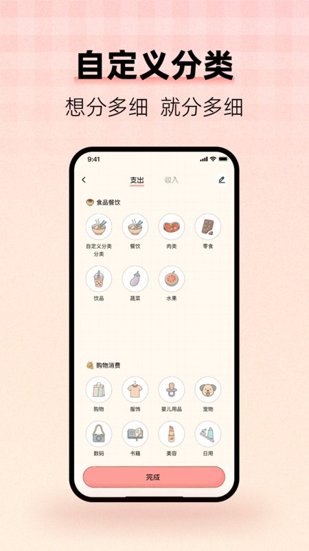 5、自定义分类灵活,用户根据个人需求创建分类,细致管理财务,满足个性化记账需求。
