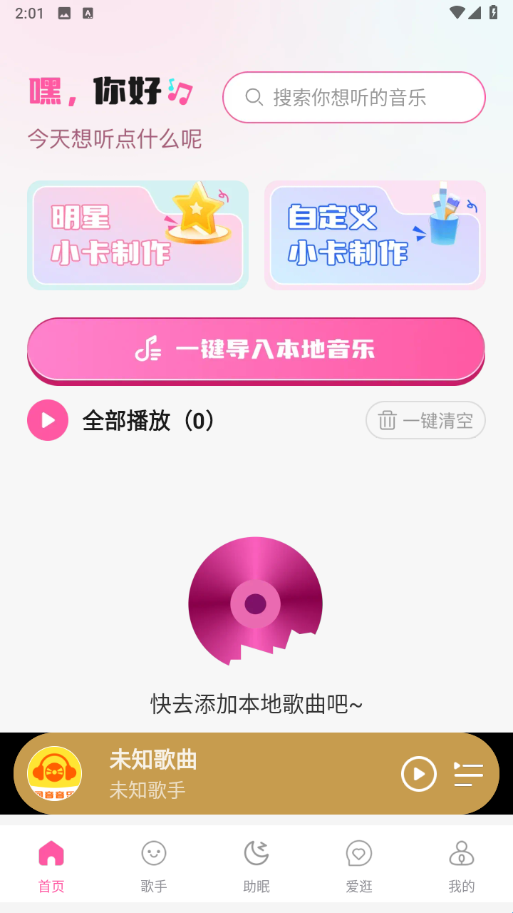1、首页带来了本地音乐播放功能,可以一键导入本地所有音频素材。