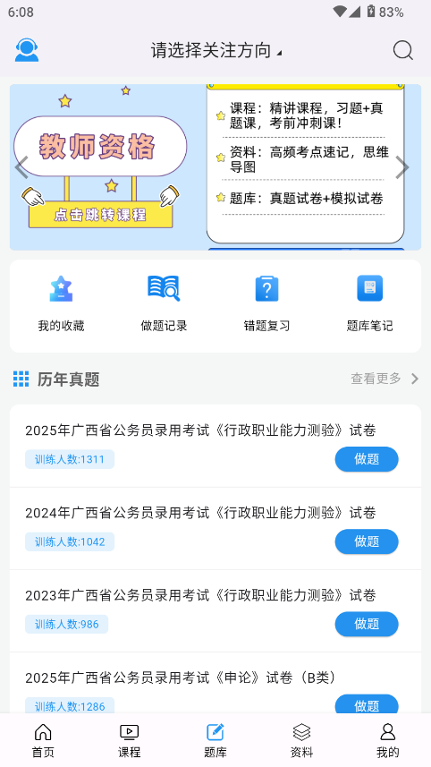 4、海量的真题与模拟题,组成了学考立方强大的题库练习板块。考生可以随时随地进行刷题练习,巩固所学知识。