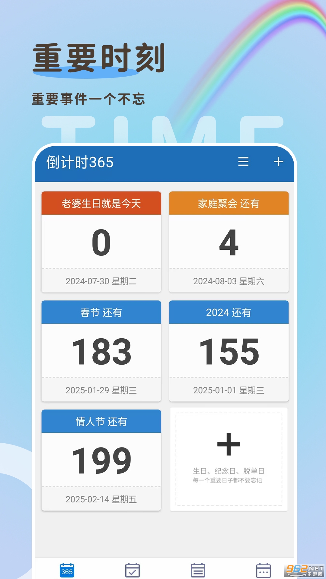 《倒计时365》是一款专注于日期管理与提醒的生活工具类软件,支持记录考试、生日、节日、纪念日、恋爱天数、生命倒计时等场景,通过正倒计时双模式精准追踪重要时刻,帮助用户高效规划时间,避免遗忘关键节点,让生活更有仪式感。