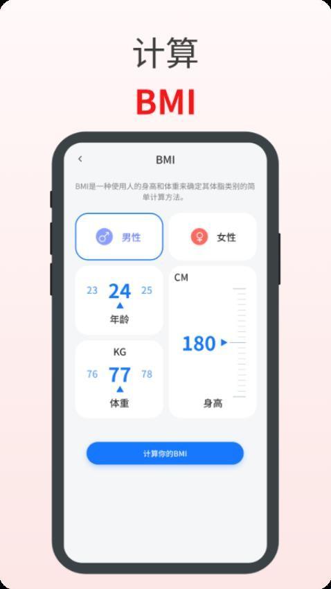 5、BMI计算:输入自己的升高以及体重等数据,就可以知道自己的身体状况。
