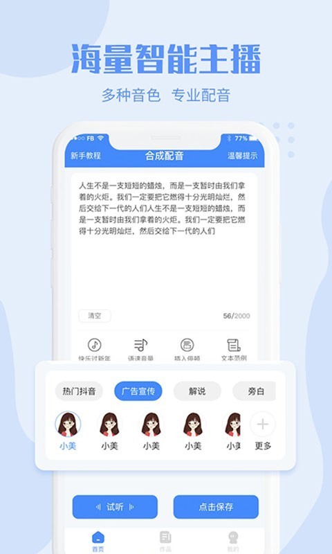 3、百种主播声音:男声、女声、童声随意切换,上百种主播供您挑选