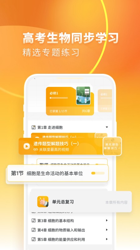 1、app采用了移动在线的授课模式,用户随时都可以打开软件学习生物知识;