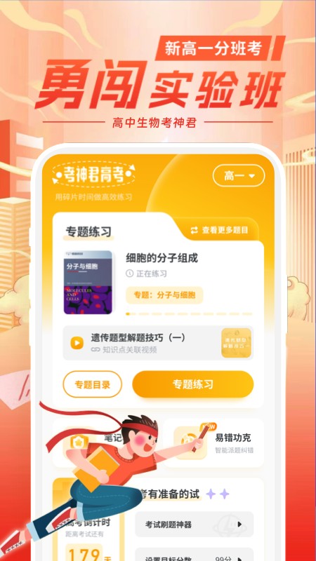 高中生物是考神君学习系列的全新应用,涵盖高中全部生物专业知识,各类历年高考生物真题免费供你参考,智能记录各类易错题目和重难点知识,不仅可以通过自学视频和在线授课模式进行系统性的学习,还能够根据你的学习情况来制定科学的学习计划和复习目标,进行查漏补缺,让你可以清楚知道自己的不足之处,没有时间限制,随时随地都可以进行学习,不仅可以及时弥补你的薄弱项目,而且还可以随时为你推送最新考试真题资源,轻松拿下考试。