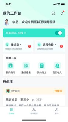 医群医生app是一款便捷的线上接诊的服务平台,可以为医生用户提供全流程的线上接诊服务,通过将所有的信息全面记录和管理,能够更加便捷的处理接诊的所有工作事务,采用智能的信息留存的方式来自动记录患者信息,随时找到更多的历史记录。