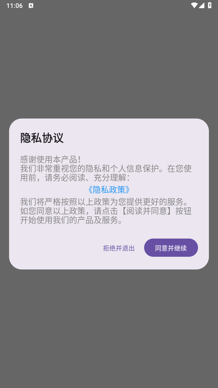1、进入软件阅读软件的隐私协议,点击同意并接受即可开始使用。