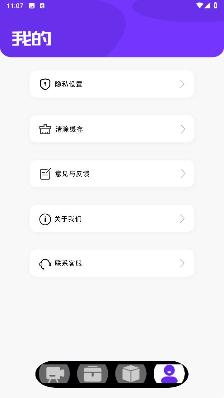 3、在软件我的页面可看到隐私设置、清理缓存、意见反馈、联系客服等功能。