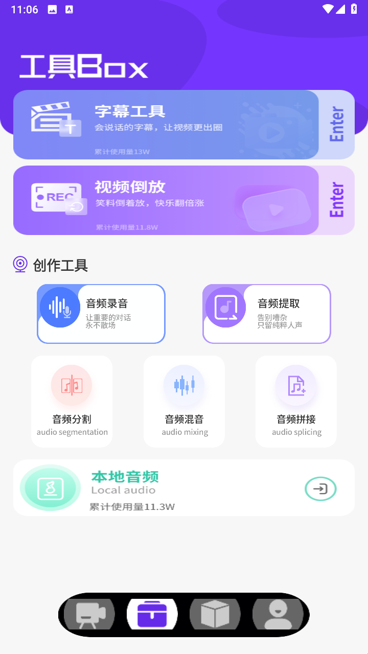 3、涵盖字幕工具、视频倒放、音频录音、音频提取、音频分割、音频混音、音频拼接等音频相关功能。