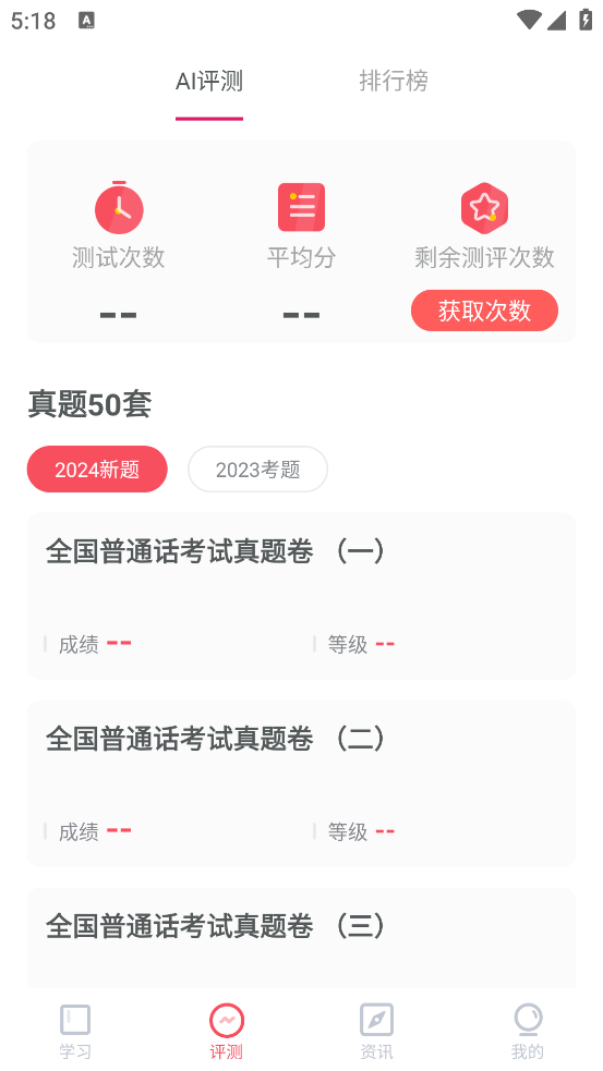2、模拟测试:海量测试真题,精准语音评分。