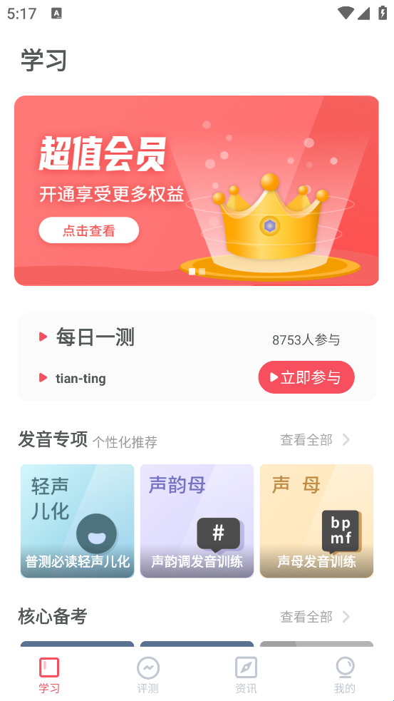 易甲普通话是一款专门为考普通话等级而打造的练习备考软件,里面拥有种类丰富的课程资源直接加入课堂即可,免费试听,通过不断地学习以及说、听纠正语言习惯的错误,还会有易错读音专项训练。用户还可以查看学习进度,资深的老师全方位系统的教授考普通话的技巧以及知识,每次诊断读音结果,帮助你了解自身缺陷。