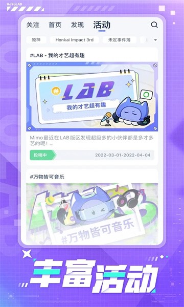 3、HoYoLAB还举办了一些社区活动,使其成为 Genshin Impact玩家交流的有用中心。