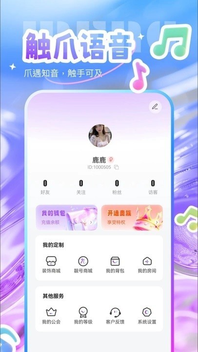 1、界面设计梦幻清新,搭配音乐元素,营造轻松愉悦社交氛围,视觉体验佳。