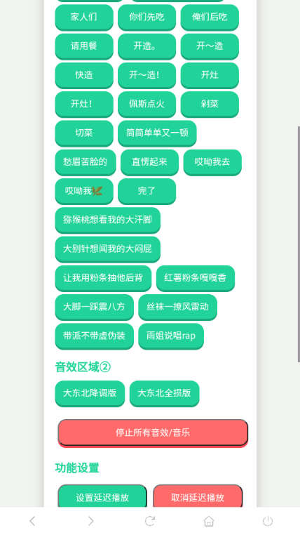 1、点击音效区域①,可收听东北雨姐语音包各类恶搞语音。