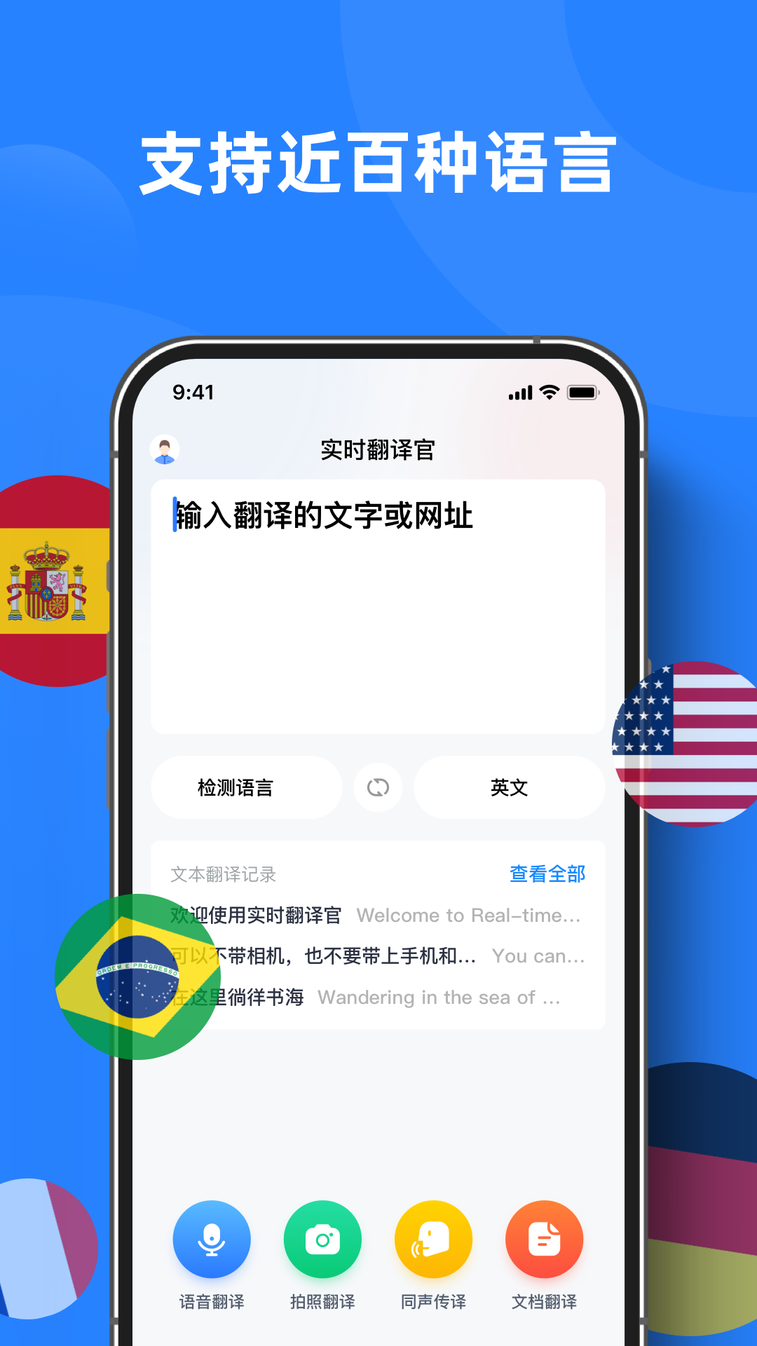 实时外语翻译大全是一看功能非常专业的语言翻译软件,拥有着多种不同的翻译功能,用户们可以很快速的就查看到这些功能,而且这些翻译功能都是不要用户们花钱就可以使用的,用户们能够在这款软件中选择到最适合自己的翻译功能进行使用,非常的方便快捷,感兴趣的用户快来下载体验吧!