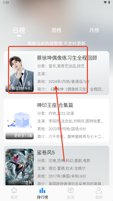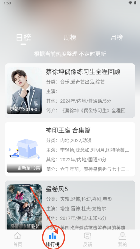 2、我们还可以通过排行榜寻找近期热门作品。
