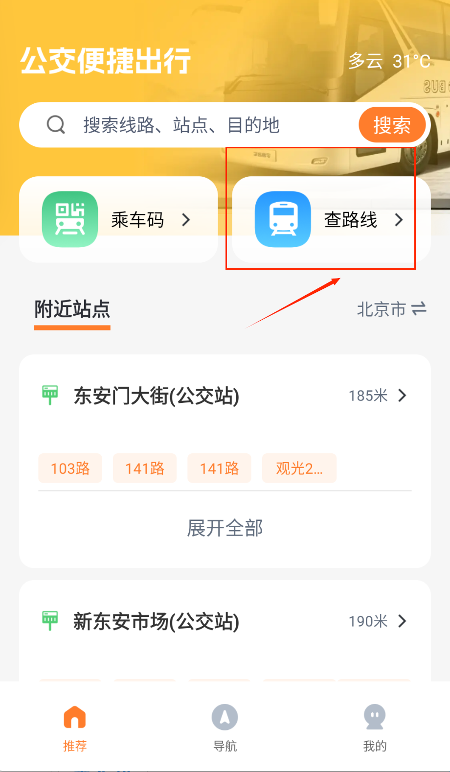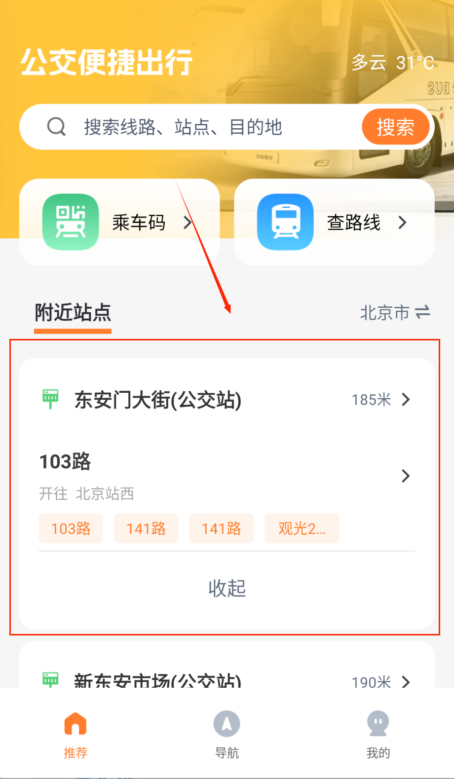 3、附近站点:自动定位当前位置。呈现你附近站点和线路信息。