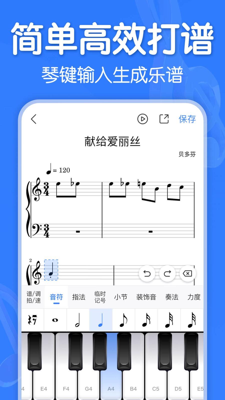 3、可播放:乐谱播放让你更快速欣赏自己的作品,并纠正错误使乐谱更完善。