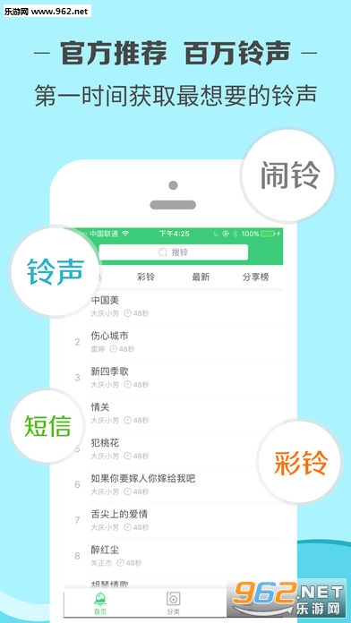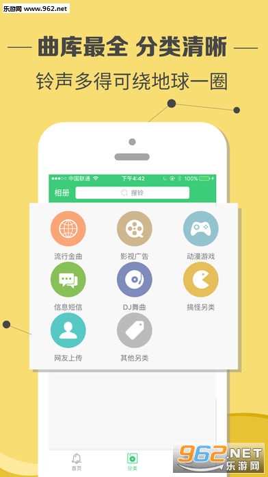 精细铃声分类,经典、原创、翻唱、恶搞、影视、动漫选你喜欢。
