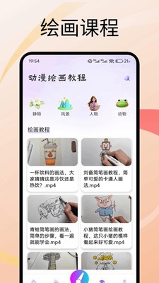 3、教程补给站包含静物、风景等绘画教程,通过视频分步教学,从基础线条到上色技巧,助你边学边练。