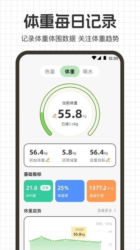 2、体重记录:支持用户使用软件来进行体重记录,能够让用户轻松记录体重数据。
