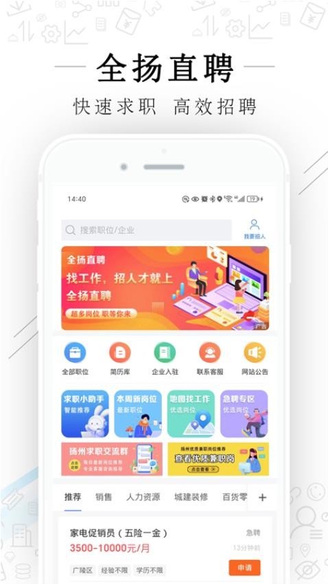 1、地域定位精准:全扬直聘聚焦扬州地区,深度挖掘本地企业招聘需求,提供贴合地域特色的岗位信息。