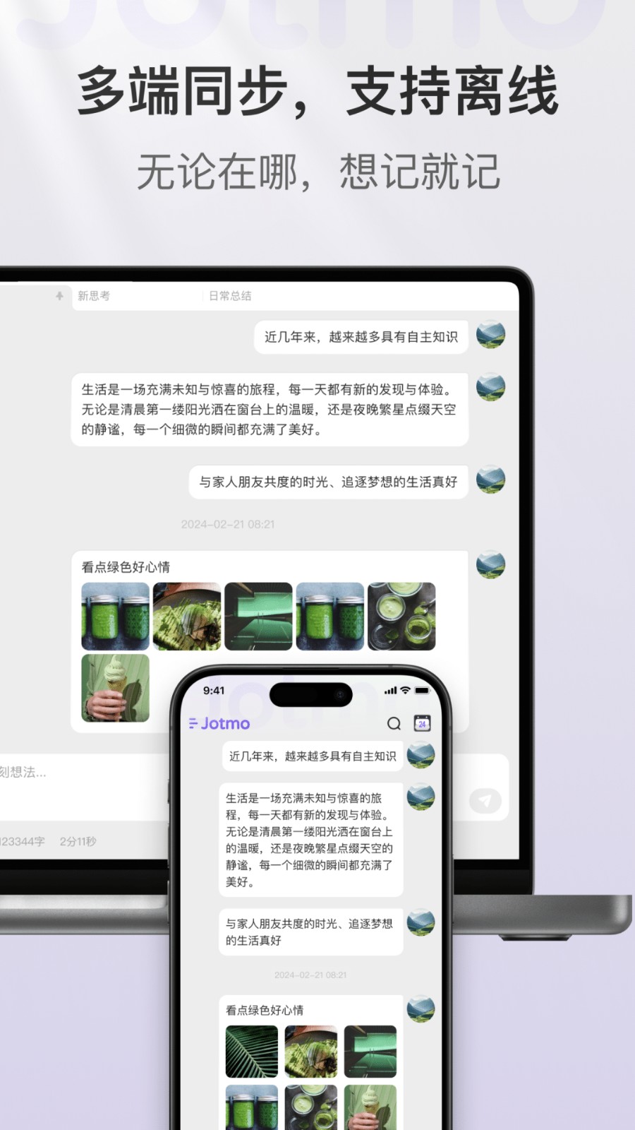 Jotmo笔记首创的对话式记录体验,让用户能够像发送信息一样轻松记录生活点滴,极大地提高了记录效率。