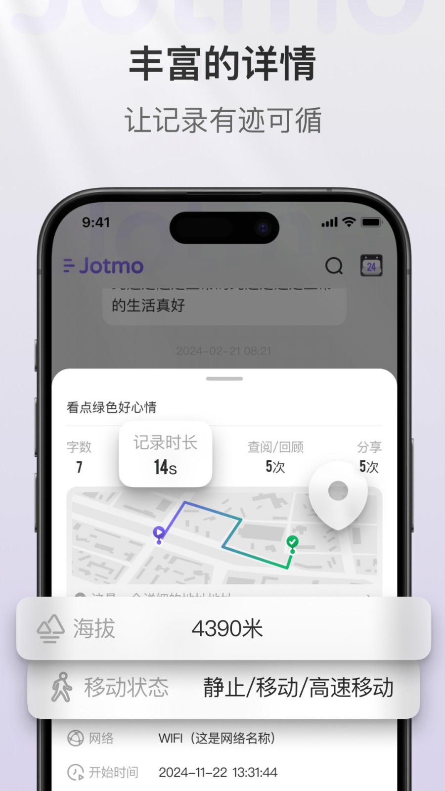 支持记录位置信息、时长等多种详情,有助于用户更全面地理解自己的记录。