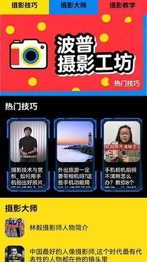 5、热门技巧:将各种热门的摄影技巧聚合推荐,用户可以轻松查找各种热门的摄影技巧查看学习。