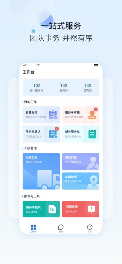 一流卡服是一款专门为车队打造的线上分工运营工具,在线就可以完成工单分发的整个事项,所有的工单状态显而易见,可以有效提高用户的工作效率,在线能够查看所有工单报修的流程走向,能够实时掌控最新的维修进度,是一款十分实用的软件。