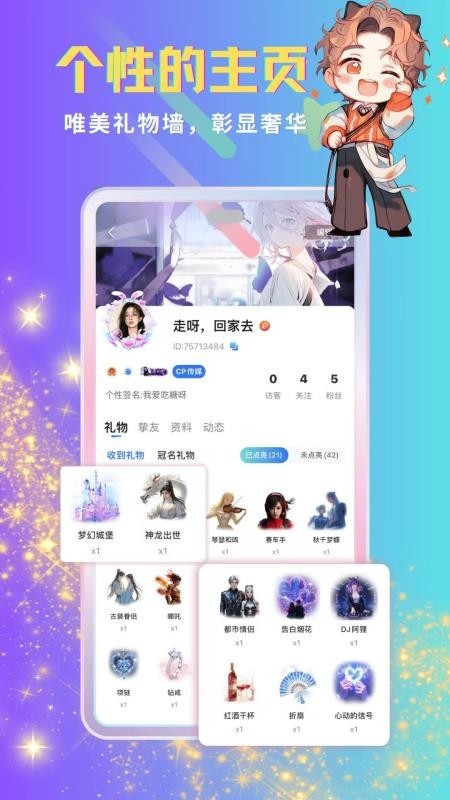 3、个性装扮:提供超多精致的装扮素材,可以支持自定义设置,高效打造个性化的主页。